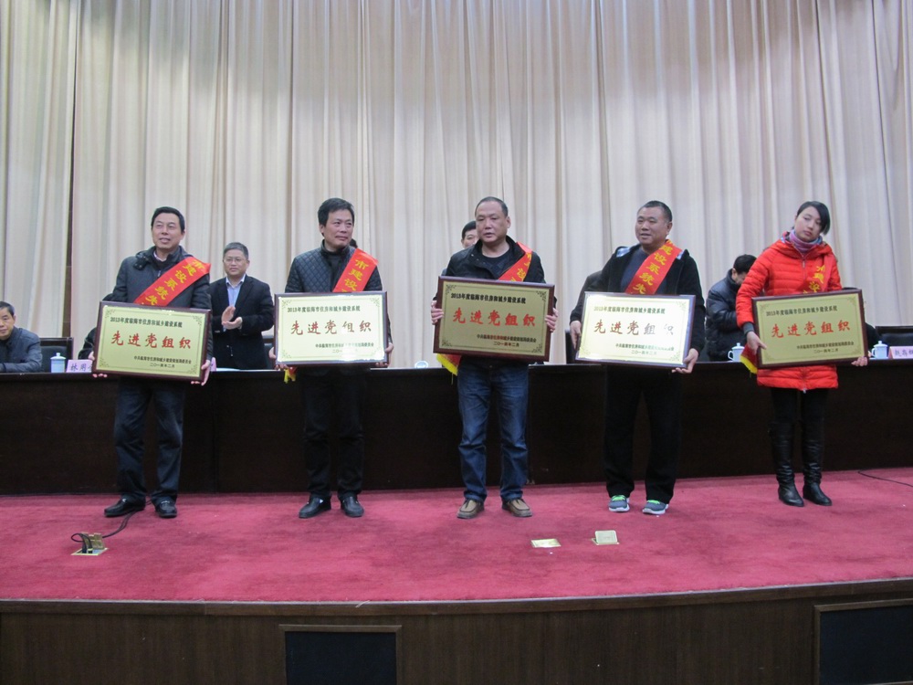 會(huì)議表彰了2013年度為臨海市城市建設(shè)作出突出貢獻(xiàn)的先進(jìn)單位和先進(jìn)個(gè)人,并舉行了隆重的頒獎(jiǎng)儀式。大經(jīng)集團(tuán)黨委被評(píng)為2013年度臨海市建設(shè)系統(tǒng)先進(jìn)黨組織,戴靈健、金呂標(biāo)、盧益軍、胡強(qiáng)被評(píng)為2013年度臨海市建設(shè)系統(tǒng)優(yōu)秀黨員,吳杰、楊高、胡國明、陳俊、蔣永平、王勤選獲得2013年度市建設(shè)系統(tǒng)先進(jìn)工作者稱號(hào)。